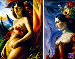 Unten finden Sie die Kunstwerke (aus kopierschutztechnischen Gründen in niederer VerpixelungAuflösung - die Leinwandoriginale sind dagegen hochauflösend) der